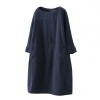 Spring Autumn Solid Color Long Sleeve O Neck Corduroy Pockets Loose Midi Dress Party Dresses