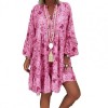 Woman Fashion Dress Beach Women Casual Mini Dress V Neck Long Sleeve Buttons Dress