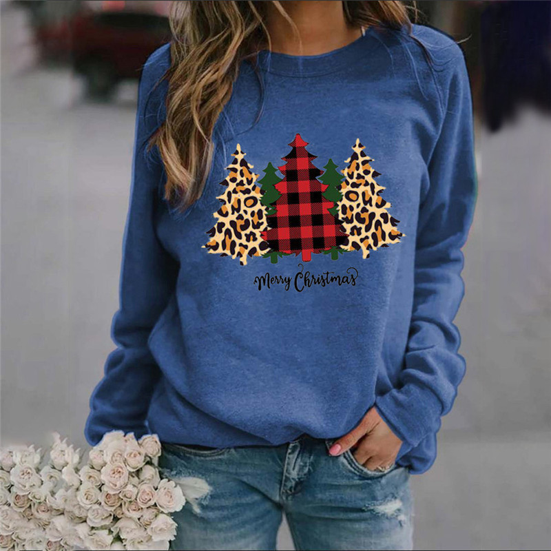 Women Christmas Tree Printed Casual O-Neck Sweater Pullover Long Sleeve Ladies Jumper Loose Tops