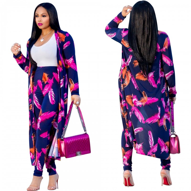 Women Print Long Sleeve Cardigan Pants Summer Two Piece Set Long Cardigan Pants 2 Piece Set Summer Women's Suits Loose Sexy, 75-Day Buyer Protection,Free Shipping