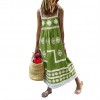 Women Summer Sleeveless Rhombus Print Beach Long Sling Dress